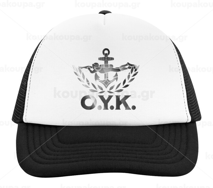 Ο.Υ.Κ., Adult Soft Trucker Hat with Black/White Mesh (POLYESTER, ADULT, UNISEX, ONE SIZE)