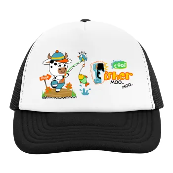 Kids Fisherman, Adult Soft Trucker Hat with Black/White Mesh (POLYESTER, ADULT, UNISEX, ONE SIZE)
