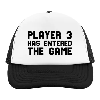 Player 3 has entered the Game, Adult Soft Trucker Hat with Black/White Mesh (POLYESTER, ADULT, UNISEX, ONE SIZE)