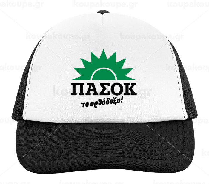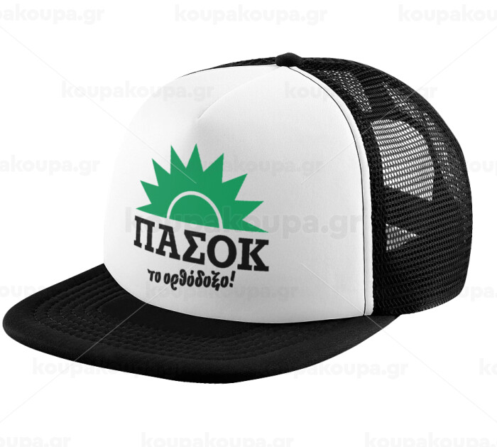 PASOK the orthodoxo, Adult Soft Trucker Hat with Black/White Mesh (POLYESTER, ADULT, UNISEX, ONE SIZE)