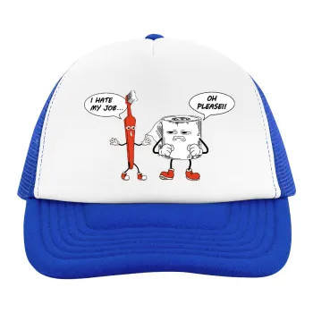 I hate my job, Adult Soft Trucker Hat with Blue/White Mesh (POLYESTER, ADULT, UNISEX, ONE SIZE)