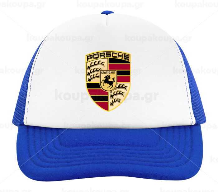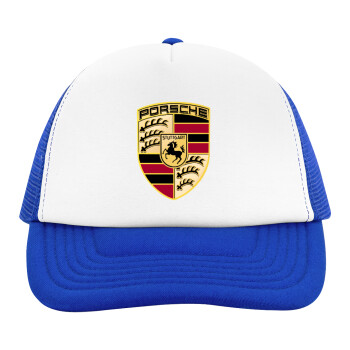 Porsche, Adult Soft Trucker Hat with Blue/White Mesh (POLYESTER, ADULT, UNISEX, ONE SIZE)