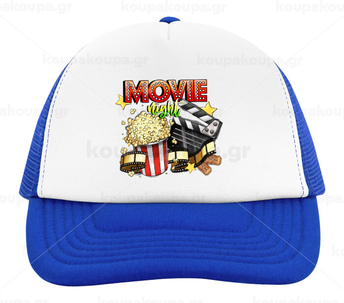 Movie night, Adult Soft Trucker Hat with Blue/White Mesh (POLYESTER, ADULT, UNISEX, ONE SIZE)