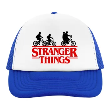 Stranger Things red, Adult Soft Trucker Hat with Blue/White Mesh (POLYESTER, ADULT, UNISEX, ONE SIZE)