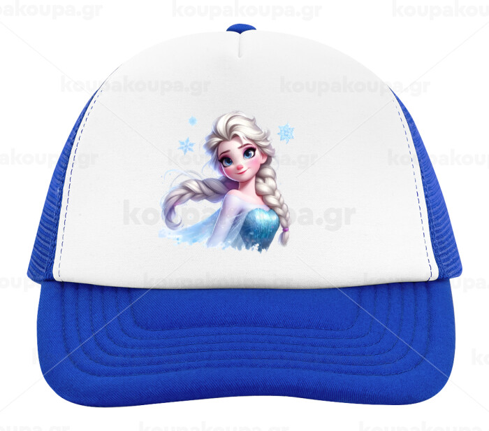 Elsa Princess, Adult Soft Trucker Hat with Blue/White Mesh (POLYESTER, ADULT, UNISEX, ONE SIZE)