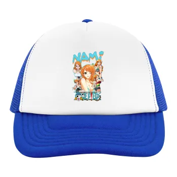 Nami One Piece, Adult Soft Trucker Hat with Blue/White Mesh (POLYESTER, ADULT, UNISEX, ONE SIZE)