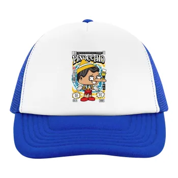 Pinocchio, Adult Soft Trucker Hat with Blue/White Mesh (POLYESTER, ADULT, UNISEX, ONE SIZE)