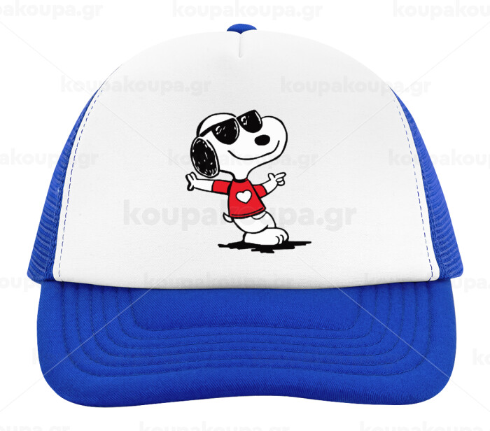 Snoopy καρδούλα, Adult Soft Trucker Hat with Blue/White Mesh (POLYESTER, ADULT, UNISEX, ONE SIZE)