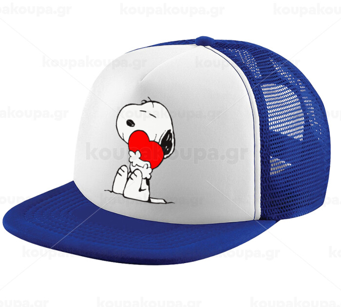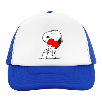 Snoopy, Adult Soft Trucker Hat with Blue/White Mesh (POLYESTER, ADULT, UNISEX, ONE SIZE)
