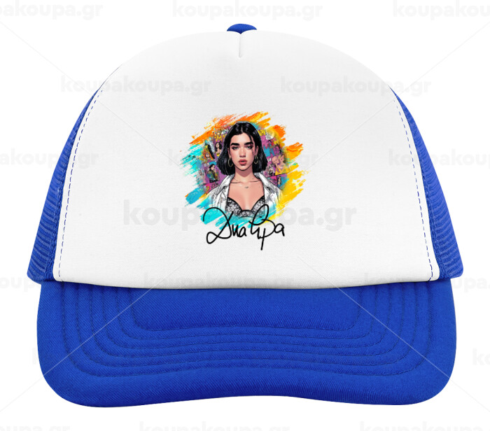Dua lipa, Adult Soft Trucker Hat with Blue/White Mesh (POLYESTER, ADULT, UNISEX, ONE SIZE)