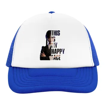 Wednesday, This is my happy face, Adult Soft Trucker Hat with Blue/White Mesh (POLYESTER, ADULT, UNISEX, ONE SIZE)