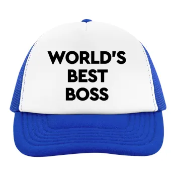 World's best boss, Adult Soft Trucker Hat with Blue/White Mesh (POLYESTER, ADULT, UNISEX, ONE SIZE)
