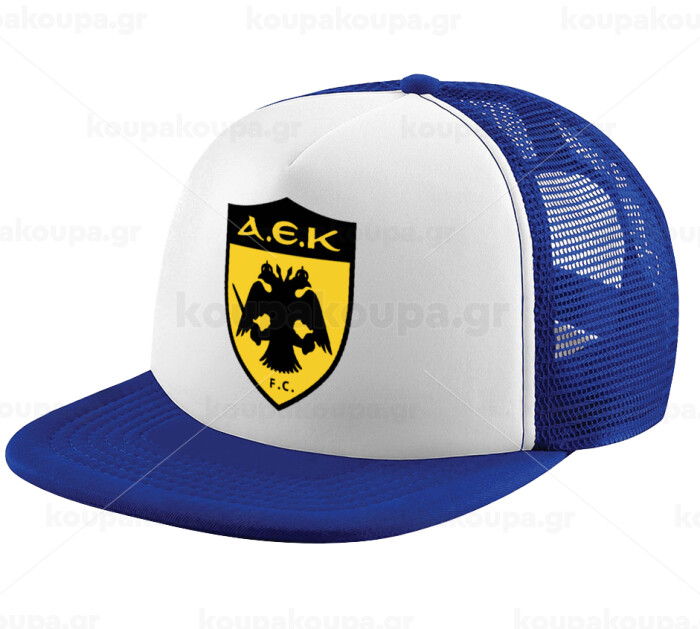 ΑΕΚ, Adult Soft Trucker Hat with Blue/White Mesh (POLYESTER, ADULT, UNISEX, ONE SIZE)