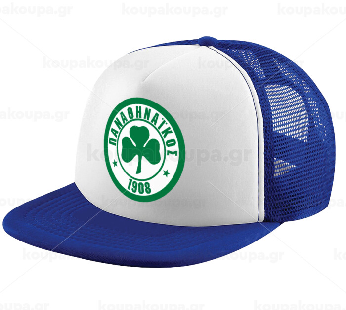 ΠΑΟ Παναθηναϊκός, Adult Soft Trucker Hat with Blue/White Mesh (POLYESTER, ADULT, UNISEX, ONE SIZE)