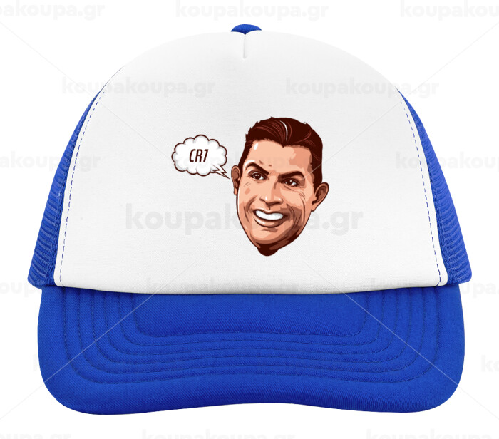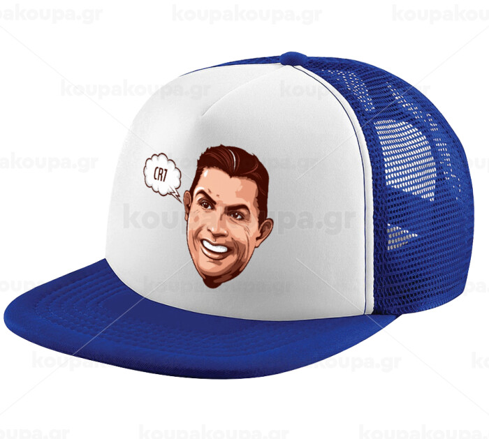 Cristiano Ronaldo, Adult Soft Trucker Hat with Blue/White Mesh (POLYESTER, ADULT, UNISEX, ONE SIZE)
