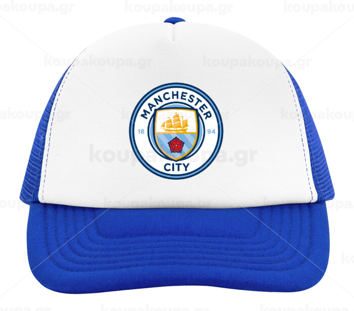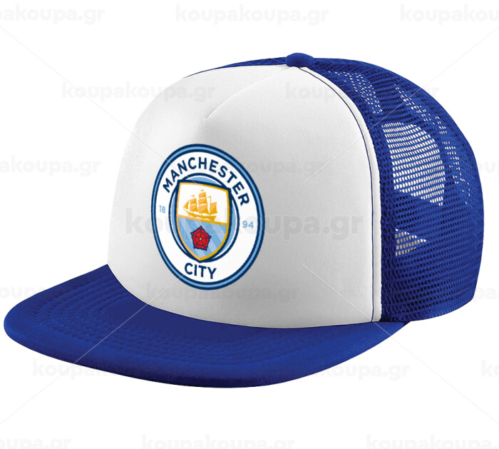Manchester City FC , Adult Soft Trucker Hat with Blue/White Mesh (POLYESTER, ADULT, UNISEX, ONE SIZE)