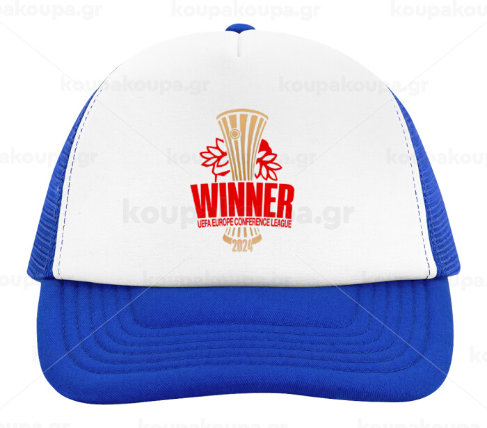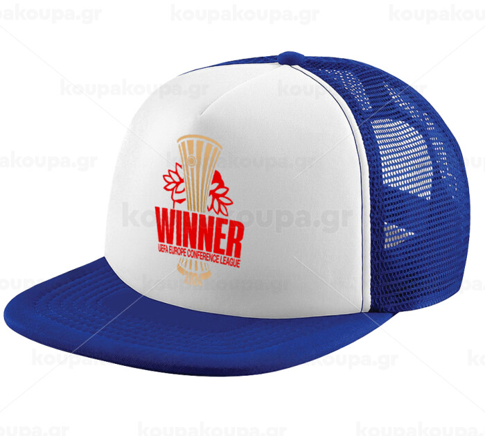 Europa Conference League WINNER, Adult Soft Trucker Hat with Blue/White Mesh (POLYESTER, ADULT, UNISEX, ONE SIZE)