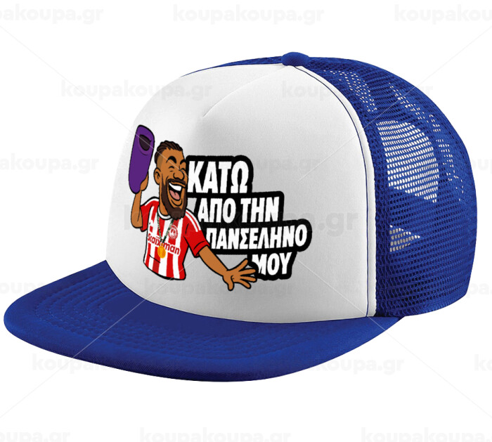 Ροντινέι, "ΚΑΤΩ ΑΠΟ ΤΗΝ ΠΑΝΣΕΛΗΝΟ ΜΟΥ!", Adult Soft Trucker Hat with Blue/White Mesh (POLYESTER, ADULT, UNISEX, ONE SIZE)