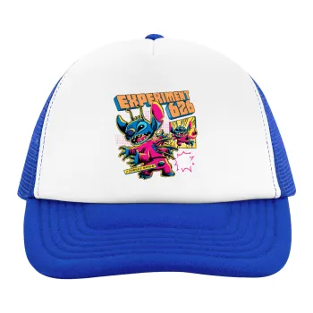 Stitch Experiment 626, Adult Soft Trucker Hat with Blue/White Mesh (POLYESTER, ADULT, UNISEX, ONE SIZE)