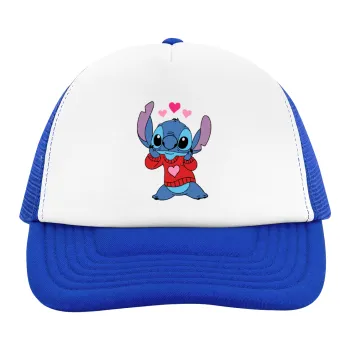Stitch heart, Adult Soft Trucker Hat with Blue/White Mesh (POLYESTER, ADULT, UNISEX, ONE SIZE)
