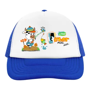 Kids Fisherman, Adult Soft Trucker Hat with Blue/White Mesh (POLYESTER, ADULT, UNISEX, ONE SIZE)