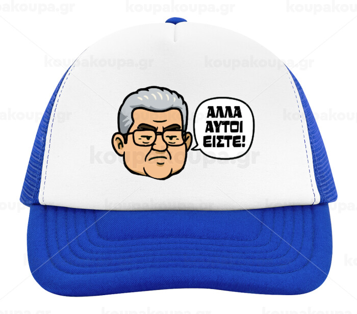 Κουτσούμπας, "Αλλά αυτοί είστε!", Adult Soft Trucker Hat with Blue/White Mesh (POLYESTER, ADULT, UNISEX, ONE SIZE)