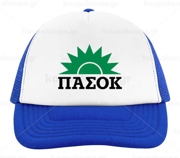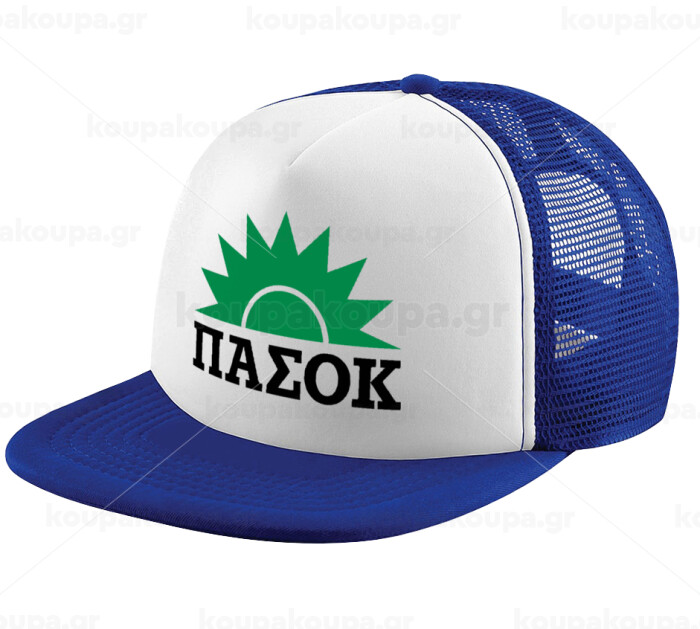 pasok, Adult Soft Trucker Hat with Blue/White Mesh (POLYESTER, ADULT, UNISEX, ONE SIZE)