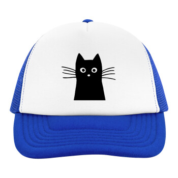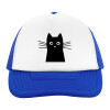 Black Cat, Adult Soft Trucker Hat with Blue/White Mesh (POLYESTER, ADULT, UNISEX, ONE SIZE)