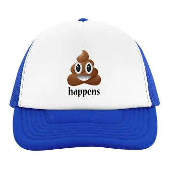 Shit Happens, Adult Soft Trucker Hat with Blue/White Mesh (POLYESTER, ADULT, UNISEX, ONE SIZE)