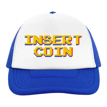 Insert coin!!!, Adult Soft Trucker Hat with Blue/White Mesh (POLYESTER, ADULT, UNISEX, ONE SIZE)