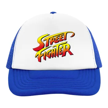 Street fighter, Adult Soft Trucker Hat with Blue/White Mesh (POLYESTER, ADULT, UNISEX, ONE SIZE)