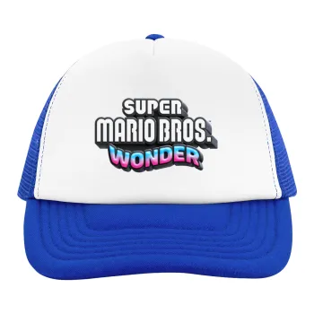 Super mario wonder, Adult Soft Trucker Hat with Blue/White Mesh (POLYESTER, ADULT, UNISEX, ONE SIZE)