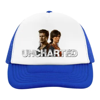 Uncharted, Adult Soft Trucker Hat with Blue/White Mesh (POLYESTER, ADULT, UNISEX, ONE SIZE)