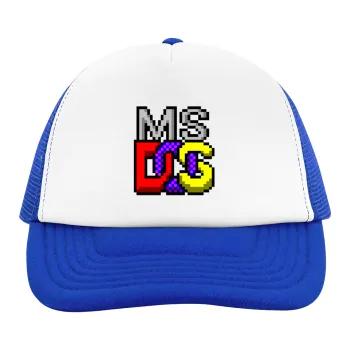 MsDos, Adult Soft Trucker Hat with Blue/White Mesh (POLYESTER, ADULT, UNISEX, ONE SIZE)
