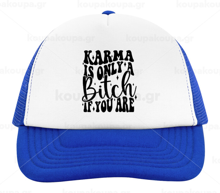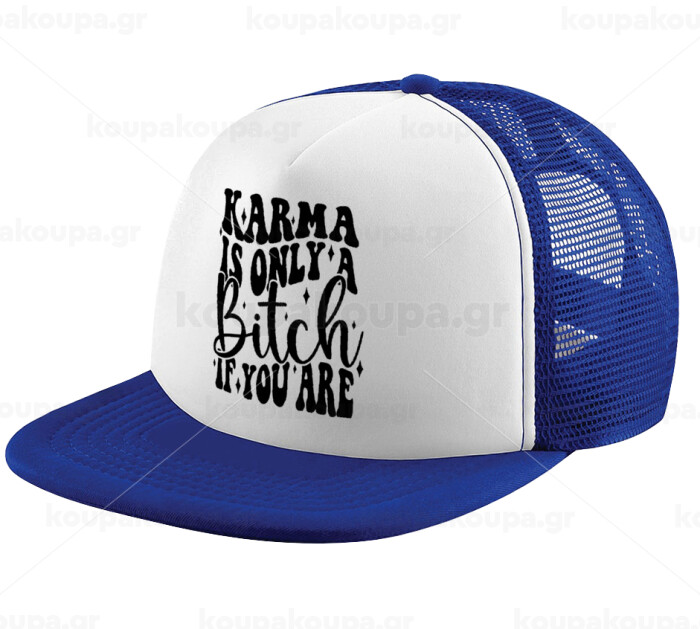 Karma is Only A Bitch if You Are, Adult Soft Trucker Hat with Blue/White Mesh (POLYESTER, ADULT, UNISEX, ONE SIZE)