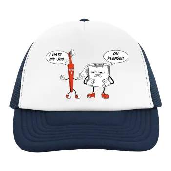 I hate my job, Adult Soft Trucker Hat with Dark Blue/White Mesh (POLYESTER, ADULT, UNISEX, ONE SIZE)
