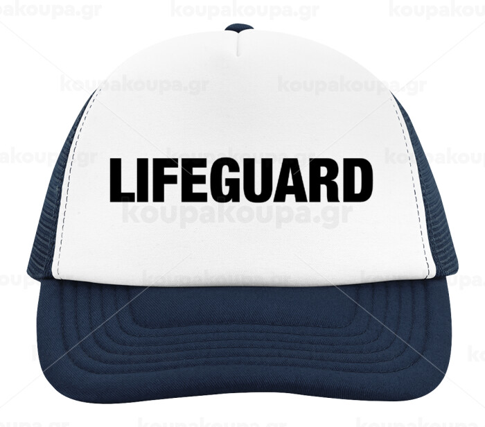 Lifeguard, Adult Soft Trucker Hat with Dark Blue/White Mesh (POLYESTER, ADULT, UNISEX, ONE SIZE)