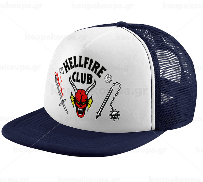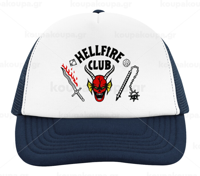 Hellfire CLub, Stranger Things, Adult Soft Trucker Hat with Dark Blue/White Mesh (POLYESTER, ADULT, UNISEX, ONE SIZE)