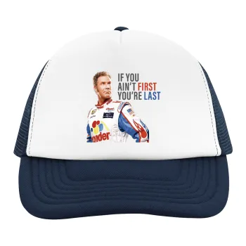 If You Ain't First You're Last Ricky Bobby, Talladega Nights, Adult Soft Trucker Hat with Dark Blue/White Mesh (POLYESTER, ADULT, UNISEX, ONE SIZE)