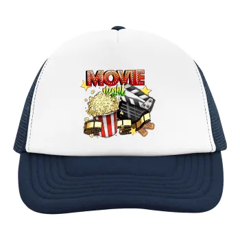 Movie night, Adult Soft Trucker Hat with Dark Blue/White Mesh (POLYESTER, ADULT, UNISEX, ONE SIZE)