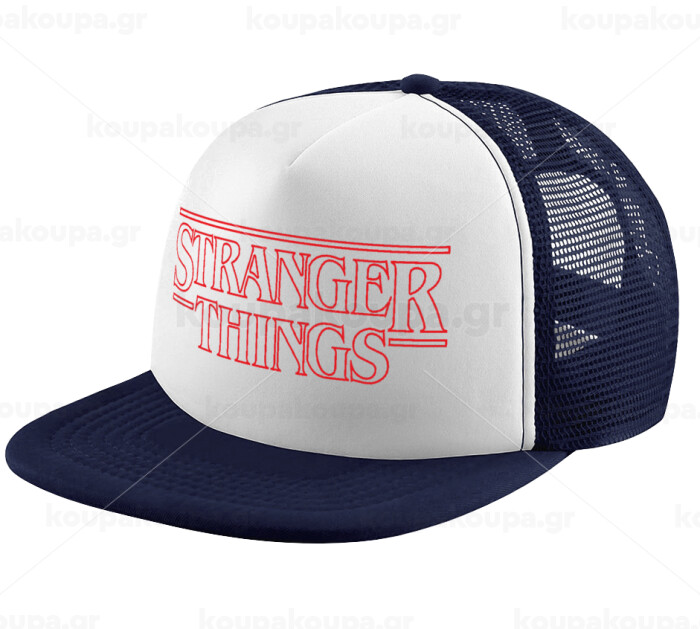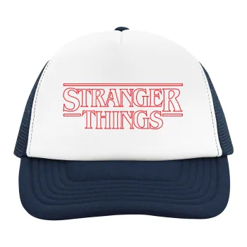 Stranger Things Logo, Adult Soft Trucker Hat with Dark Blue/White Mesh (POLYESTER, ADULT, UNISEX, ONE SIZE)