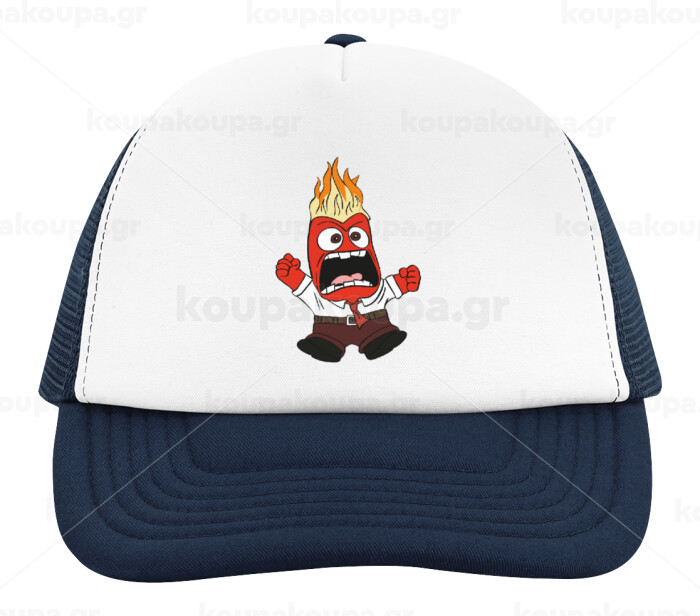 Inside Out Angry, Adult Soft Trucker Hat with Dark Blue/White Mesh (POLYESTER, ADULT, UNISEX, ONE SIZE)