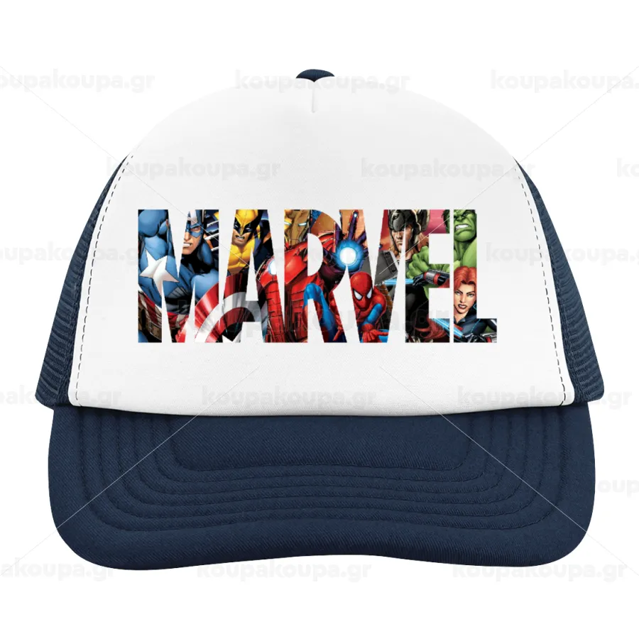 MARVEL characters, Adult Soft Trucker Hat with Dark Blue/White Mesh (POLYESTER, ADULT, UNISEX, ONE SIZE)