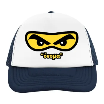 Ninja Eyes με όνομα, Adult Soft Trucker Hat with Dark Blue/White Mesh (POLYESTER, ADULT, UNISEX, ONE SIZE)
