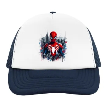 Spiderman City, Adult Soft Trucker Hat with Dark Blue/White Mesh (POLYESTER, ADULT, UNISEX, ONE SIZE)