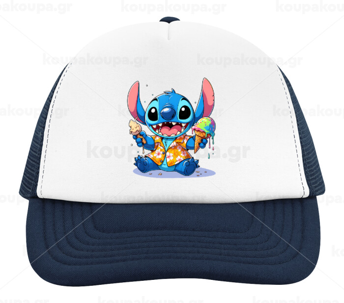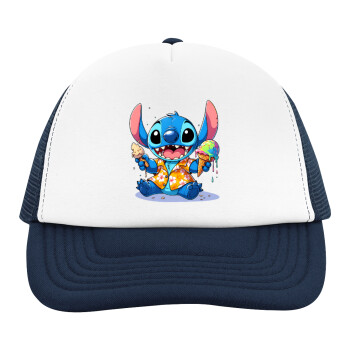 Stitch Ice cream, Adult Soft Trucker Hat with Dark Blue/White Mesh (POLYESTER, ADULT, UNISEX, ONE SIZE)