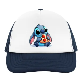 Stitch Pizza, Adult Soft Trucker Hat with Dark Blue/White Mesh (POLYESTER, ADULT, UNISEX, ONE SIZE)