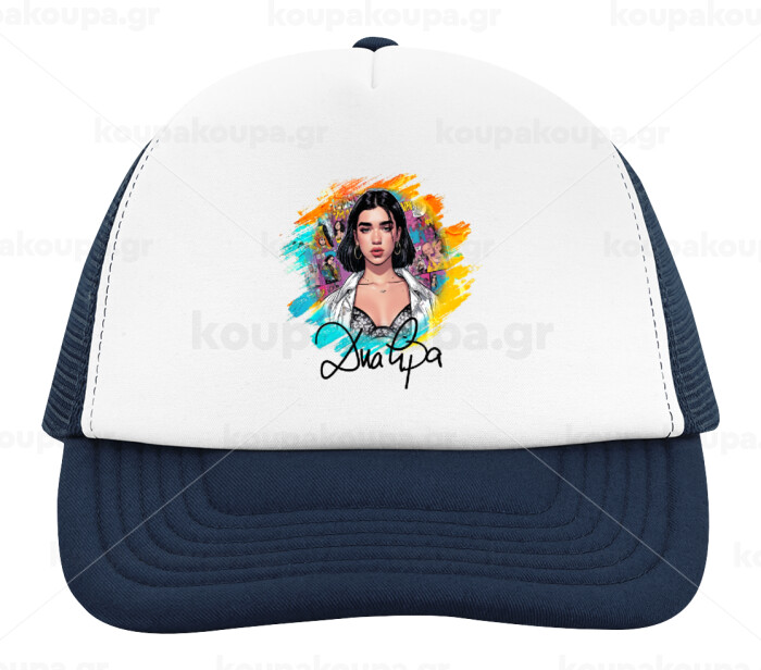 Dua lipa, Adult Soft Trucker Hat with Dark Blue/White Mesh (POLYESTER, ADULT, UNISEX, ONE SIZE)