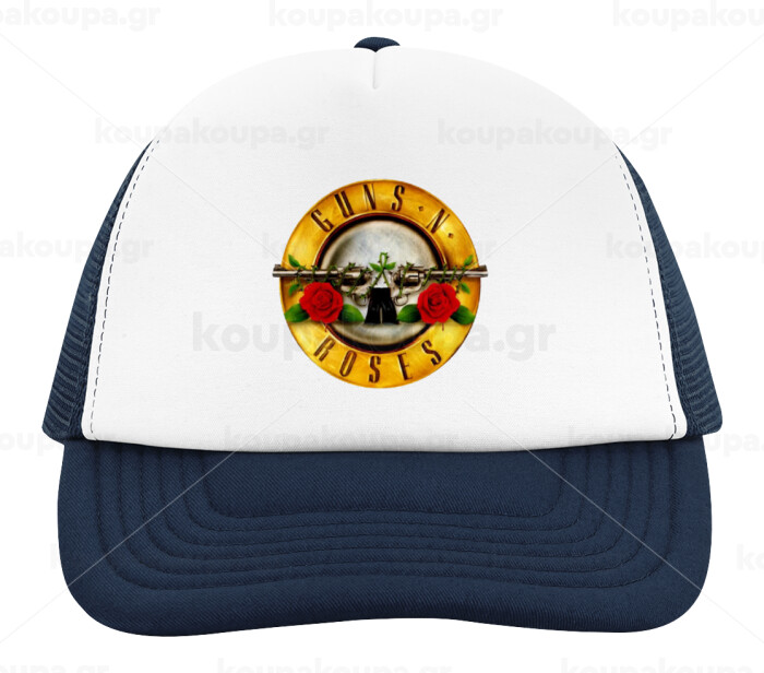 Guns N' Roses, Adult Soft Trucker Hat with Dark Blue/White Mesh (POLYESTER, ADULT, UNISEX, ONE SIZE)