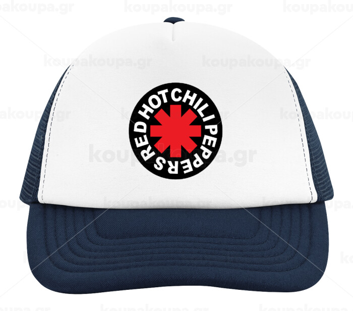 Red Hot Chili Peppers, Adult Soft Trucker Hat with Dark Blue/White Mesh (POLYESTER, ADULT, UNISEX, ONE SIZE)